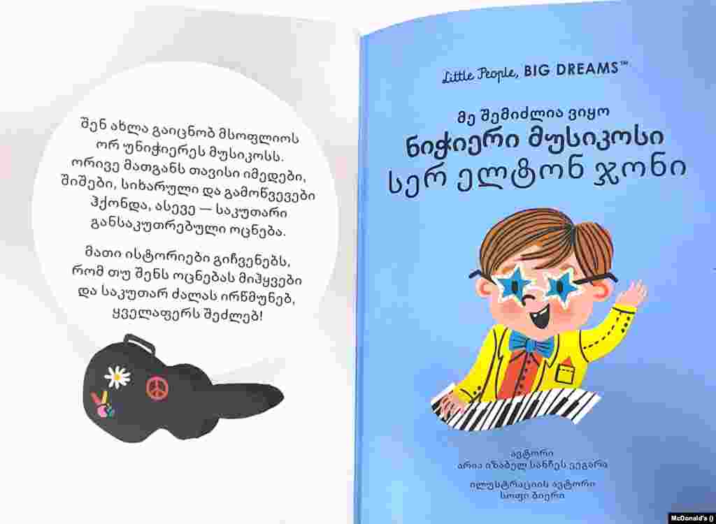 წიგნი, რომელიც Happy Meal-ის მენიუს მოჰყვება, გლობალური მაკდონალდსის კამპანიის ნაწილია და სხვადასხვა ცნობილი ადამიანის ბავშვობის შესახებ ჰყვება. ერთ-ერთი ბოლო გამოშვება მუსიკოსებს, არეტა ფრანკლინსა და ელტონ ჯონს ეხება.