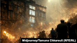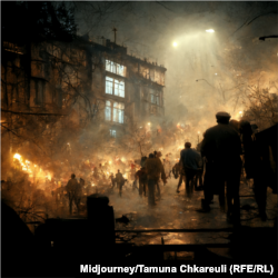 იმის გათვალისწინებით, რომ ალგორითმი თბილისის კონკრეტულ ადგილებს კი არ ხატავს, არამედ სრულიად უნიკალურ გამოსახულებებს ქმნის “თბილისის” საფუძველზე, ცუდი არ არის, მაგრამ აპოკალიფსიც დიდად არ იგრძნობა. მისი ნახატები, ვიტყოდი, ჩვეულებრივ, მოსაღამოებულ თბილისს ჰგავს. გაცილებით შთამბეჭდავი იყო MidJourney-ს შედეგი, სადაც უფასოდ დაახლოებით 25 სურათს დააგენერირებ: