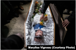 მარილიზ ვინიოს ერთ-ერთი ფოტო საპროტესტო აქციიდან, ასახავს სიმბოლურ მსვლელობას რუსთაველზე კუბოთი, რომელშიც ქართული ოცნების საპატიო თავმჯდომარის ფიტული დევს.