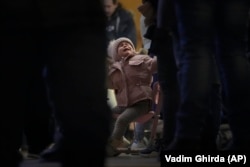ატირებული ბავშვი კიევის სადგურში, საიდანაც ხალხი ცდილობს ლვოვისკენ გამგზავრებას. 28 თებერვალი.
