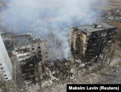 რუსეთის თავდასხმის შედეგად განადგურებული საცხოვრებელი კორპუსები ბოროდიანკაში. 3 მარტი.