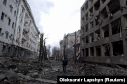 რუსეთის თავდასხმის შემდეგ განადგურებული სახლები ხარკოვში. 8 მარტი