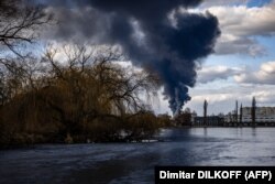ხანძარი ნავთობბაზაზე თავდასხმის შემდეგ. ვასილკივი. 27 თებერვალი.
