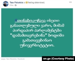 თაზო ფაცაციას ფეისბუკგვერდზე უკვე წაშლილია პოსტი, რომლის გამოც მას ბოდიშის მოხდა დასჭირდა.