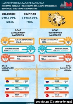 სომხეთი და ყაზახეთი რუსეთთან ერთად იმ ტოპ ათ ქვეყანაში შედიან, რომლებშიც საქართველომ 2023 წლის იანვარ-თებერვალში ყველაზე მეტი პროდუქცია გაიტანა ექსპორტზე. გაზრდილია სამომხმარებლო ტექნიკის გატანის მაჩვენებელიც.