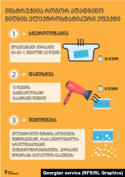 ამერიკის ბიოტექნოლოგიის ცენტრის გვერდზე გამოქვეყნებულ სტატიაში მოცემულია პირბადეების სტერილიზების რამდენიმე მეთოდი, რომელთა ნაწილის შესრულებაც სახლის პირობებშიცაა შესაძლებელი.