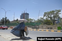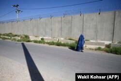 1 ივლისი - ბურკაში ჩაცმული ქალი აშშ-ის ყოფილი ბაზების ახლოს გზას მიუყვება.