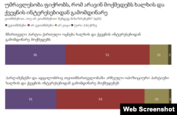 ეროვნულ-დემოკრატიული ინსტიტუტის(NDI) ბოლო კვლევის მიხედვით, საქართველოს მოსახლეობის უმრავლესობა მიიჩნევს, რომ არც მმართველი პარტია და არც ოპოზიცია მათი ინტერესებიდან გამომდინარე არ მოქმედებენ. კვლევაში ოპოზიციას უფრო დიდი ნეგატიური მაჩვენებელი აქვს.