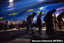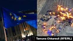 “ევ-რო-პა, ევ-რო-პა..” - სკანდირებენ ბავშვები პარლამენტის წინ, 3 ივლისის აქციაზე. ცეკვავენ და თან ევროკავშირისა და საქართველოს დროშებს აფრიალებენ. გუშინ ლურჯი ვარსკვლავებიანი დროშა ანტიდასავლურმა, ჰომოფობიურმა ჯგუფებმა დაწვეს და ზედ მიაფურთხეს კიდეც, დღეს შეკრებილი ხალხისთვის კი ის თავისუფლებისა და კეთილდღეობის სიმბოლოა.