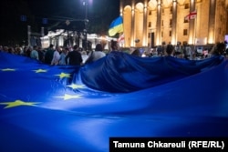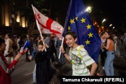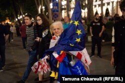 ასე ფიქრობს 36 წლის ლანა ღონღაძეც, რომელსაც ერთ ხელში ევროკავშირის, მეორეში კი სახელმწიფო დროშა უჭირავს. მას რვა და ათი წლის შვილები ჰყავს. “ჩემი შვილების მომავალი - ამაზე მნიშვნელოვანს ვერაფერს ვიტყვი”, მეუბნება ის.