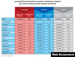 2023 წლის იანვარ-მარტში საქართველოს უმსხვილესი სავაჭრო პარტნიორი ქვეყნები იყვნენ თურქეთი (568,7 მლნ. აშშ დოლარი), რუსეთი (490 მლნ. აშშ დოლარი) და აშშ (261,8 მლნ. აშშ დოლარი).